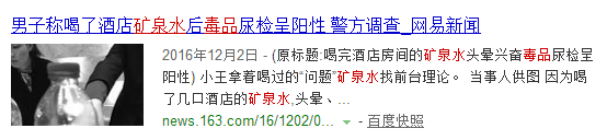 11月19日晚八点,小王和朋友住进了一家酒店准备过夜,走进房间,小王随手拿起一瓶酒店免费提供的矿泉水就喝,七八分钟后他觉得头痛、恶心还心跳厉害,接着就是不断的呕吐,经检验小王尿检结果呈阳性,而被带去检测的矿泉水中,确实有毒品成分,果真是误食了毒品!为什么会出现这样的情况?原来他住的哪间套房是酒店一个高层领导长期休息的,那天晚上他刚好不再,前台才把房间开给他们,而那个高层才是真正吸毒的人,小王的生活和工作都因此受到了影响,车也不能开、班也不能上。