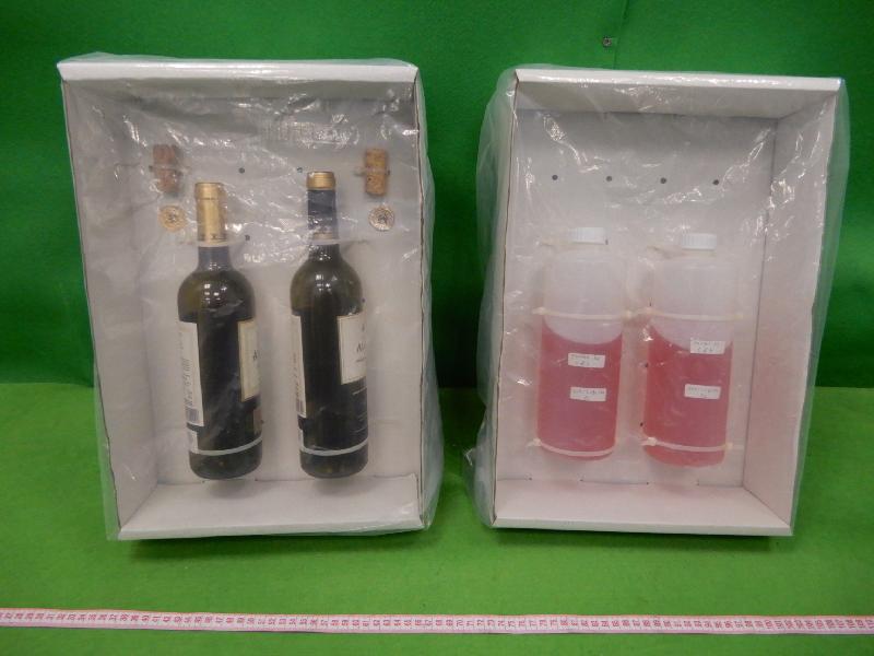 日前,广州海关在白云国际机场查获一名女性旅客利用“红酒”藏匿毒品入境,缴获液态可卡因6.6千克!